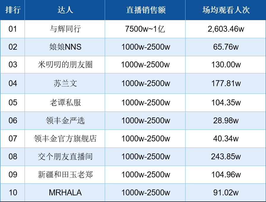抖音1月5日直播带货日榜:与辉同行超7500万出卖额断层第一;领丰金两店播双双上榜,位列第六、第七位。
